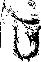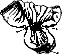 и менее растяжимо ущемляющее кольцо, тем сильнее нарушается кровообращение в ущемленном органе и тем быстрее наступает омертвение его. При очень узком кольце омертвение может наступить в течение первых 12 часов, и обычно протекает как сухое ущемление, т. е. в грыжевом мешке жидкости (грыжевой воды), как это обычно бывает, не наблюдается. Различают острую, под-острую, хрон. и скрытую формы ущемления. Последняя форма самая опасная, т. к., протекая при хорошем самочувствии б-ного, она вводит в заблуждение не только последнего, по и врача. Такую форму нередко дают случаи ущемления кишечной стенки (пристеночные грыжи). Хрон. форма ущемления наблюдается при громадных Г. с широкими грыжевыми воротами и при невправимыхГ., при чем ущемлению чаще всего подвергается толстая кишка.— Встречающиеся при ущемлении симптомы можно разделить на 3 группы: 1) общие Рис Ущемлеиие