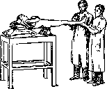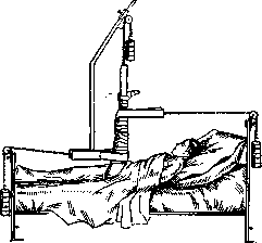товленные из сморщенной бумажной ткани, представляют продукт иностранного производства, обладающий большой тягучестью.— Второй слой в повязке обычно составляет вата. Мягкость, эластичность и пористость этого материала сводит его роль к защите страдающей области от внешнего насилия, к смягчению давления бинта (особенно—отвердевающего) и к предохранению от холода. Ценность сортов ваты зависит от степени ее очистки, от примесей сора, от длины ее волокон и эластичности. Цвет ваты играет меньшую роль, хотя белизна служит для глаза большей гарантией ее чистоты. Т. н. гигроскопическая вата представляет продукт, обезжиренный вывариванием в щелоке и обладающий капилярпо-стыо. В смысле эластичности эта вата уступает обыкновенной. В наружных слоях повязки гигроскопичность ваты является излишней. Суррогатами хлопчатобумажной ваты в ме-ханич. смысле являются другие волокнистые продукты, как-то: юта, пенька, лен и производные дерева, начиная от стружек и кончая чистой древесной клетчаткой (лигнин). Мох и торф также находят применение в целях замены ваты. Для надобностей военного времени вата заготовляется в прессованном виде; пакеты ее, как и бинты, получают обертку соответственного, разного цвета. В задачи Д. входит также изучение повязок, придающих неподвижность в целях покоя больной или поврежденной части тела. В прежние времена это достигалось применением различных пластинок (шин) п жолобов, сделанных из картона. дерева (см. рисунок 11), проволоки, железа, алюминия и пр. Для импровизации шин служат предметы обихода вроде дранки, прутьев, пучков соломы (см. рисунок 12), зонтиков, ножен от сабли и др. Техника иммобилизации в значительной мере улучшилась и упростилась с изобретением в середине XIX в. т. н. отвердевающих повязок, образующих коробку для включения поврежденной части. Материалом для пропитывания первых отвердевающих повязок служил крахмальный клейстер (Seutin). Появление крахмальной марли фабричного изготовления спо- ■ рпс. 12. собствовало дальнейшему распространению крахмальной повязки, со стоящей из нескольких слоев смоченного в кипятке крахмального бинта с проложенными между ними полосами картона. Вслед за тем нашла особое, еще большее распространение гипсовая повязка. Современная техника ее наложения заключается в том, что напудренными гипсом марлевыми бинтами, смачиваемыми в теплой воде, обвивается страдающая часть тела (конечности и позвоночник). Количество необходимых слоев за- висит от массивности повязки, в к-рую так-зке могут быть вложены металлические, деревянные и картонные пластинки. Вслед за крахмалом и гипсом вошли в употребление другие отвердевающие вещества: клей, жидкое стекло, творог, целюлоид, желатина. Отвердевающие повязки требуют особых инструментов для их снятия (ножницы Seu-tin 'a, Stille и др.); обыкновенно повязки эти накладываются поверх слоя ваты. Процесс наложения или смены повязки должен быть обставлен с наименьшим беспокойством больного и с удобством хирурга. При легких повреждениях головы, туловища и конечностей б-ному предоставляется сидячее положение. Перевязка в лежачем положении облегчается пользованием особыми перевязочными столами с подставками под крестец (см. рисунок 13). В числе методов, применяемых в Д. для целей иммобилизации, важное место занимает вытяжение, проще всего достигаемое 
