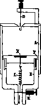 Весьма портативная и пригодная для исследований в производственной обстановке модификация электропре-ципитатора разработана в СССР в 1930 г. в Центральном ин-те охраны труда (Блинов) (рис. 4). Прибор состоит из двух надевающихся друг на друга цилиндров А (стекло) и В (эбонит). В эбонитовой крышке цилиндра А имеется круглое отверстие С (диаметром в 1 мм), служащее для затягивания запыленного воздуха. В отверстие С вставлена острая тонкая игла D так, что вокруг иглы образуется кольцевидный промежуток. В цилиндр В вставлен эбонитовый диск F (диаметром в 5 см) с металлической сердцевиной Е (диаметром'16 мм), соединенный при помощи пружины L с клеммой К. Между стенками диска F и цилиндра В имеется ряд отверстий для прохода воздуха из верхнего цилиндра в нижний. На иглу D и диск Е накладывается высокая разность потенциалов; воздух, протягиваемый с большой линейной скоростью через узкое отверстие С, ударяется о диск. Комбинация этого удара струи воздуха о диск с действием электрического поля дает полноту осаждения пыли на диске Е. Осевшую пыль исследуют под микроскопом, определяя число пылинок в единице объема воздуха, размеры пылинок и ее морфол. свойства. Для весового определения пыли на диск до опыта кладется тончайший слюдяной кружочек, который вместе с осевшей на нем пылью взвешивается на микровесах. Наряду с выведением гравиметрических и кониметрическйх показателей и.определением размеров пылинок необходимым элементом исследования пыли является хим. анализ, имеющий своей задачей определение состава пыли и различных ее хим. свойств. Оздоровительные мероприятия. Борьба с промышленной П. является не только одной из серьезнейших задач сан .-гиг. порядка, одним из серьезнейших моментов борьбы за снижение заболеваемости рабочих, но и чрезвычайно важна с точки зрения производственно-экономической, т. к. пыль нередко на-