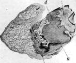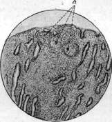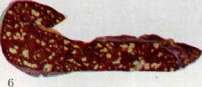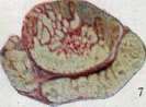 Pnc, 1. Милиарпын the легкого; значительный отек ткани легкого. Рис, 2. ЗажквшнЯ первичный аффект {через луну): а-^костные балки с участками костного мозга (с) между ними; d—творожистые МАССЫ; Ь—фиброзная i;;ui-Сула, отграничивающая аффект. Рисунок 3, Заживший первичный аффект (через лупу). Рисунок А. Туб. бугорки (а) в слизистой оболочке .матиц. Гпс. 5. Линзы Коха на стенке каверны и легком. I'hc. 6. Солитарпый tbc селезенки. Рисунок 7. Заживший первичный аффект нижней доли правого легкого у старика-шфизематпка (видно пузыревидное вздутие передник н верхних ч а стен легкого); аффект имеет вид окостеневшего образовании, лежит тотчас под утолщенной плеврой.