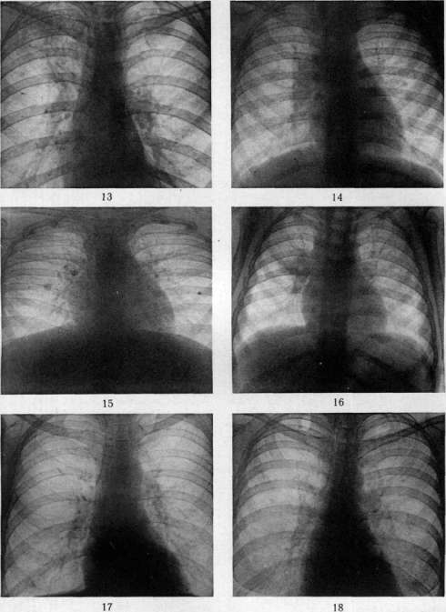 Рнс 14. Поражение желез К0[шя правого легкого. Рисунок 15. Ойънзнест&Ч'Ннын первичный комплекс С очагом Гона справа. Рисунок 16. Прикорневое инфильтрировав не справа; линейная тень утолщенной междолевой плевры. Рис 17. Очаговый фиброз верхушки левого легкого. Рисунок I&. Слева кал и пол ключннеА неиаше облэчковидные теин туй. ннфнльтрвта. К Стг Ту0ерку.нз летал.